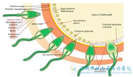 第二步,精子与卵子透明带结合并发生顶体反应是由精子表面的配体和卵子表面的透明带上精子受体的结合而实现的。精子在头部的顶体酶的作用下,在卵透明带上溶出一个洞让精子穿过。但是这个过程,需要很多精子“齐心协力”才足以溶穿透明带。