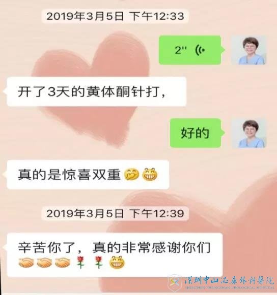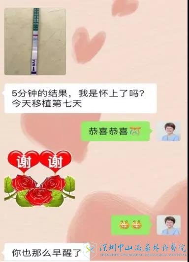 从上月27号第一次踏入你们医院,初次见到你和张医生及护士们,心理有种被幸运神砸中的感觉,一路很顺利,医疗技术精准稳。连内膜一直不上5mm的我,张医生给我做B超说,挺好的啊7A,还记得我激动的拉着你的手,我说你们真的是我的幸运女神啊。