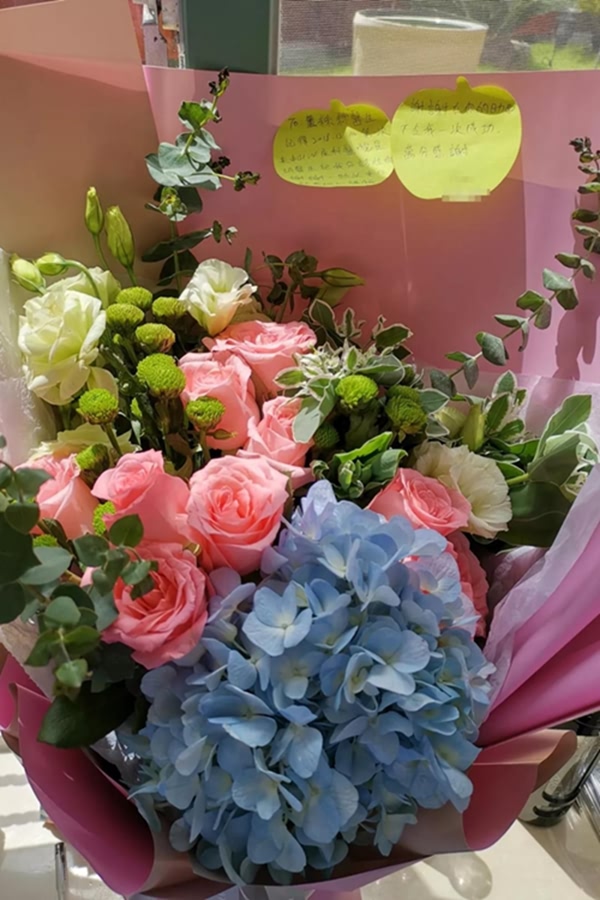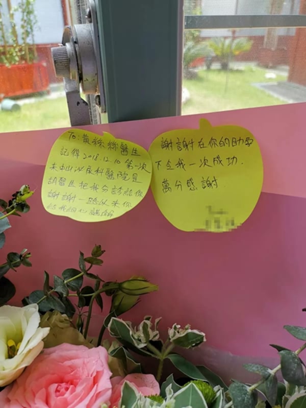 近日,深圳中山妇产医院王丝丝医生收到一位准妈妈送的鲜花,上面还附有感谢词“记得2018年12月10日第一次来中山泌尿外科医院,是胡医生把我分诊给你,谢谢一路以来你给我细心讲解,谢谢在你的助孕下令我一次成功!”