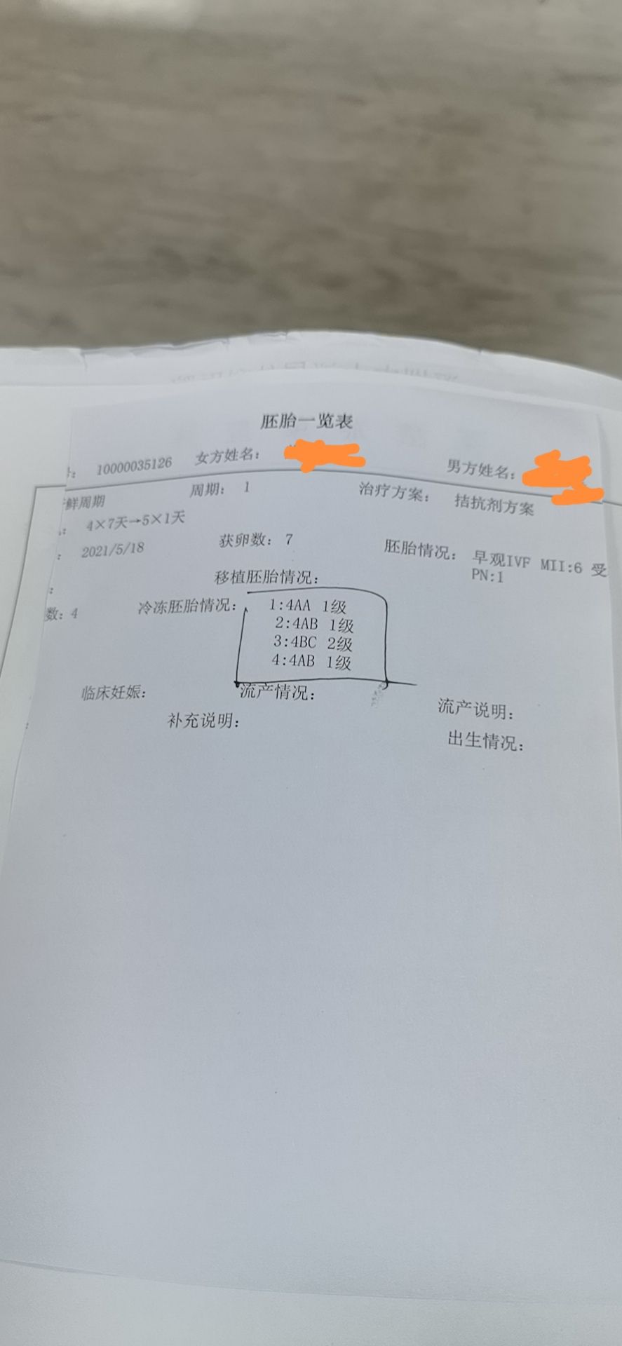 夫妻双方检查结果出来没问题就进入促排卵周期了,我的顾问医生是胡晓东医生,她帮我定好方案交给周期医生王燕医生,整个促排期间王燕医生都很细心帮我安排用药,我不懂的问题都很耐心帮我解答,促排过后到取卵这步了,取卵那天好紧张,不知道能取几个,因为本身卵子就少,取完出来医生说取了7个,接下来拿去培养,培养那几天真的度日如年,终于到了出结果那天,那天我早早就来到医院,得知结果那刻悬着的心终于放松一点了,五个胚胎养成4个优质囊胚,中山泌尿医院养囊技术真的很棒,昨天已经移植了一颗4AA的优质囊胚,期待开奖日的到来,迎接我的宝宝到来,感恩深圳中山妇产医院的医生和护士,谢谢你们。