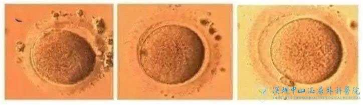 GV(左)和MI(中)为未成熟卵子,MII(右)为成熟卵子