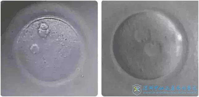 Day1:正常受精 双原核(左)--异常受精 三原核(右)