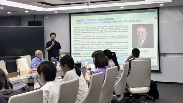 报告深入浅出地阐述了人类母-胎界面免疫微环境调节机制,重点介绍了子宫树突状细胞(DCs)亚群在胚胎着床过程中的关键调节作用。会议现场交流热烈,参会同事及学生们纷纷表示不仅在学术上受益匪浅,更从Gil Mor教授分享的研究经历中汲取了勇于面对科研挑战的力量。